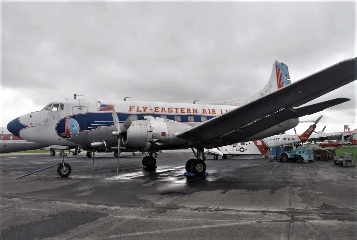 I was immediately attracted to these two airliners, a Martin 4-0-4 in its original Eastern Airlines paint, and a Vickers Viscount in original Capital Airlines colors.