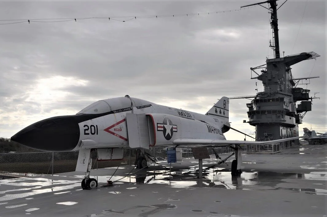 The museum is essentially divided into two parts: The carrier deck, which has Vietnam era aircraft on display, and the hangar deck, which centers on WW-II aircraft and exhibits. It is a large museum, with many aircraft, so we will cover it in two parts. Let’s start topside and visit the hangar deck next month.