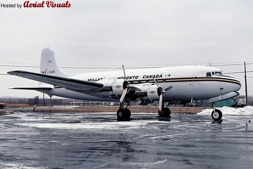Shortly following her retirement and still in 1975, she was sold to AAAP Co, an aircraft broker, who registered it with the civilian “N” number N48163 and then re-registered it as N904DS. In February 1978, she went to Canada to work for Carl Millard of Millardair, where she was registered C-GQIB. She was named "The Sky Trader" and was used mostly to ferry auto parts between Toronto and Detroit for the next 12 years. During her time with Millardair C-GQIB was repainted into TWA livery colors for an unknown movie and then painted back into Millardair colors.
