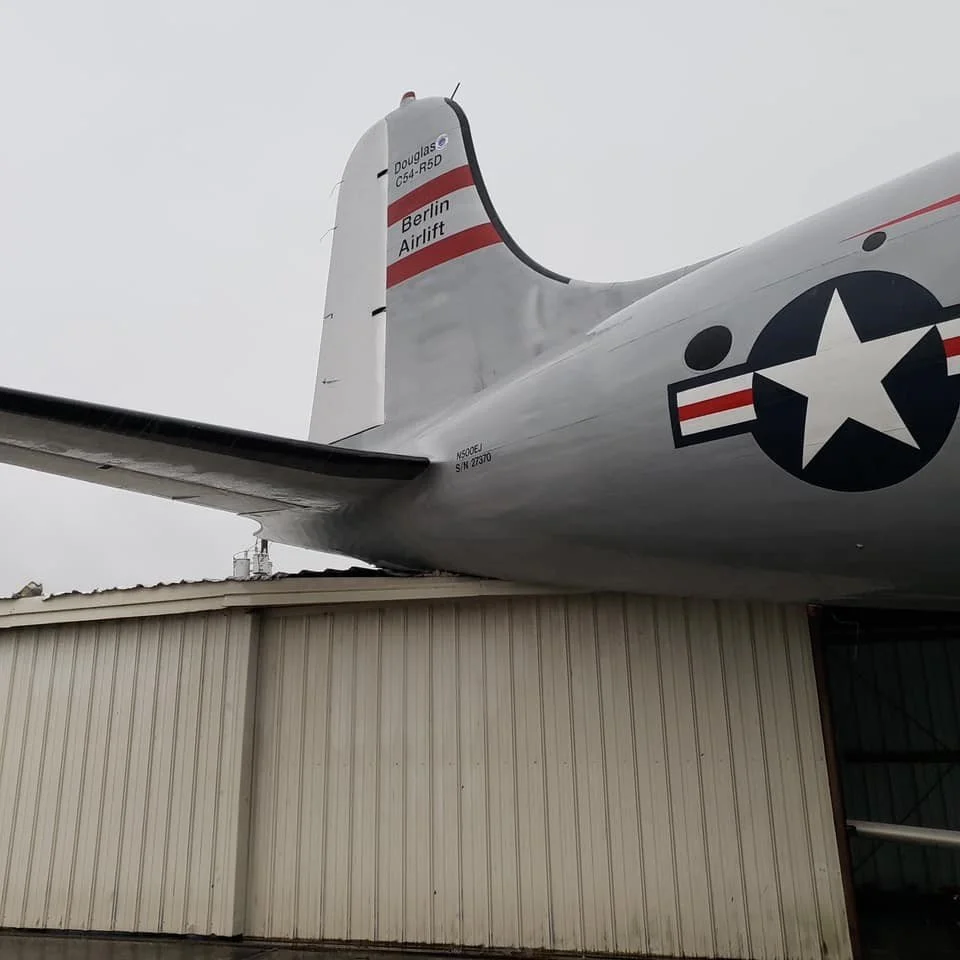 Tim Chopp, owner of the plane and president of the Berlin Airlift Historical Foundation, broke the sad news on the untimely death of the Skymaster. Mother Nature did what the Soviet Union could not do – stop the Skymaster from flying its mission. “To our loyal and dedicated support group: It is with a heavy heart we announce our Douglas C-54, the ‘Spirit of Freedom’ was severely damaged early in the morning of Monday April 13, 2020 by tornados that ravaged the Carolinas causing wide spread destruction and loss of life. Our Douglas C-54 was parked at the Walterboro, SC, airport on December 18, 2019 for the installation of a new Stratus Transponder to comply with the FAA mandate for transponders meeting the ADS-B requirements by January 1, 2020. Thanks to Swamp Fox Avionics at the Walterboro Airport, our C-54 is now in compliance. It is too early to assess the extent of the tornado damage, however, photographs reveal the leading edge of the right outerwing and the rear left center wing flap area received substantial damage. Due to the many restrictions now in place regarding the Covid-19 virus epidemic, it will take some time to reach a full evaluation. Our concerns and prayers go out to the families who lost loved ones due to the tornado outbreak. A sincere thank you to everyone for your continued support over the years to the Berlin Airlift Historical Foundation to help keep the Douglas C-54 and our Boeing C-97 flying on their missions of history, education, and remembrance about the great Berlin Airlift of 1948 and 1949.”