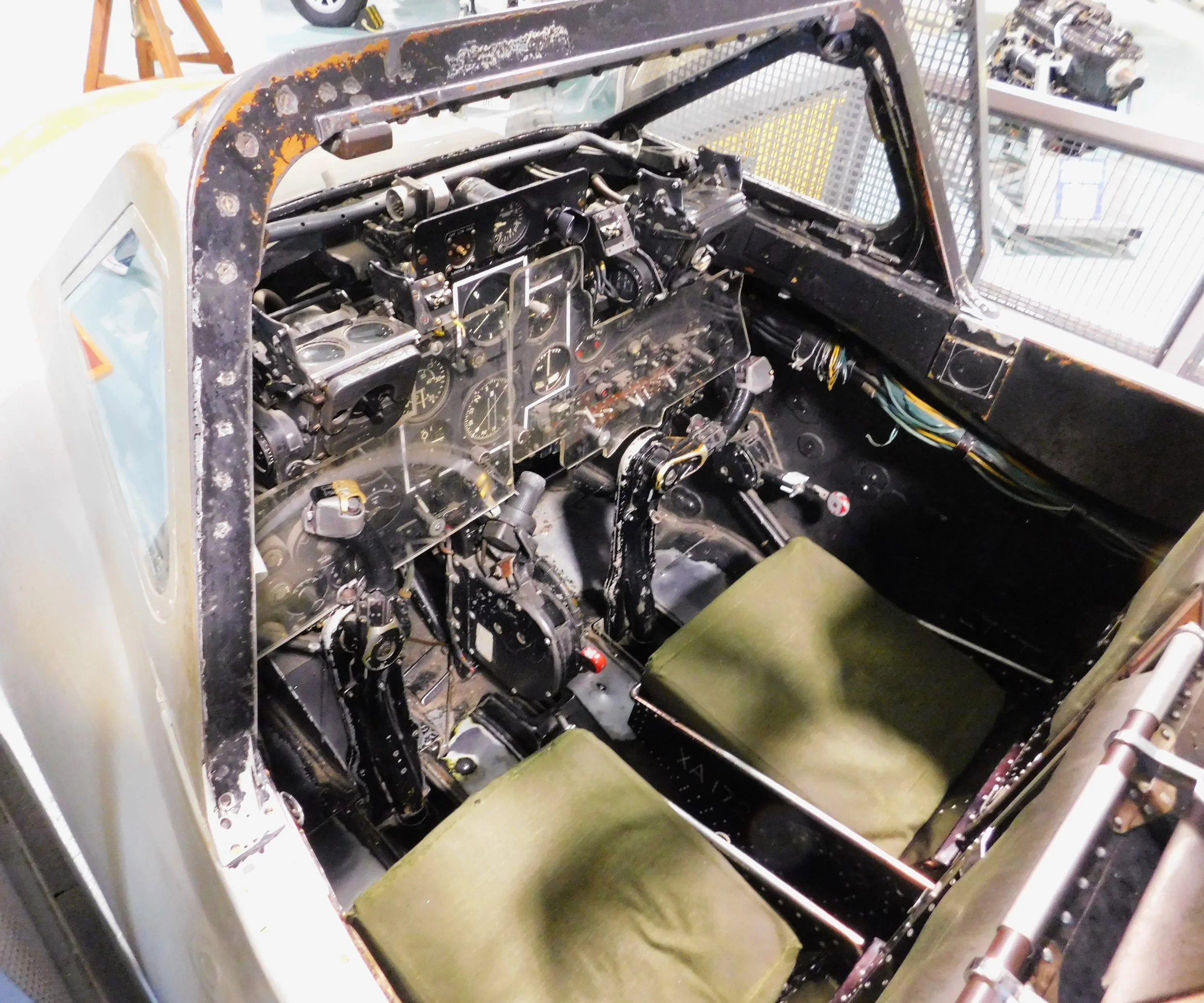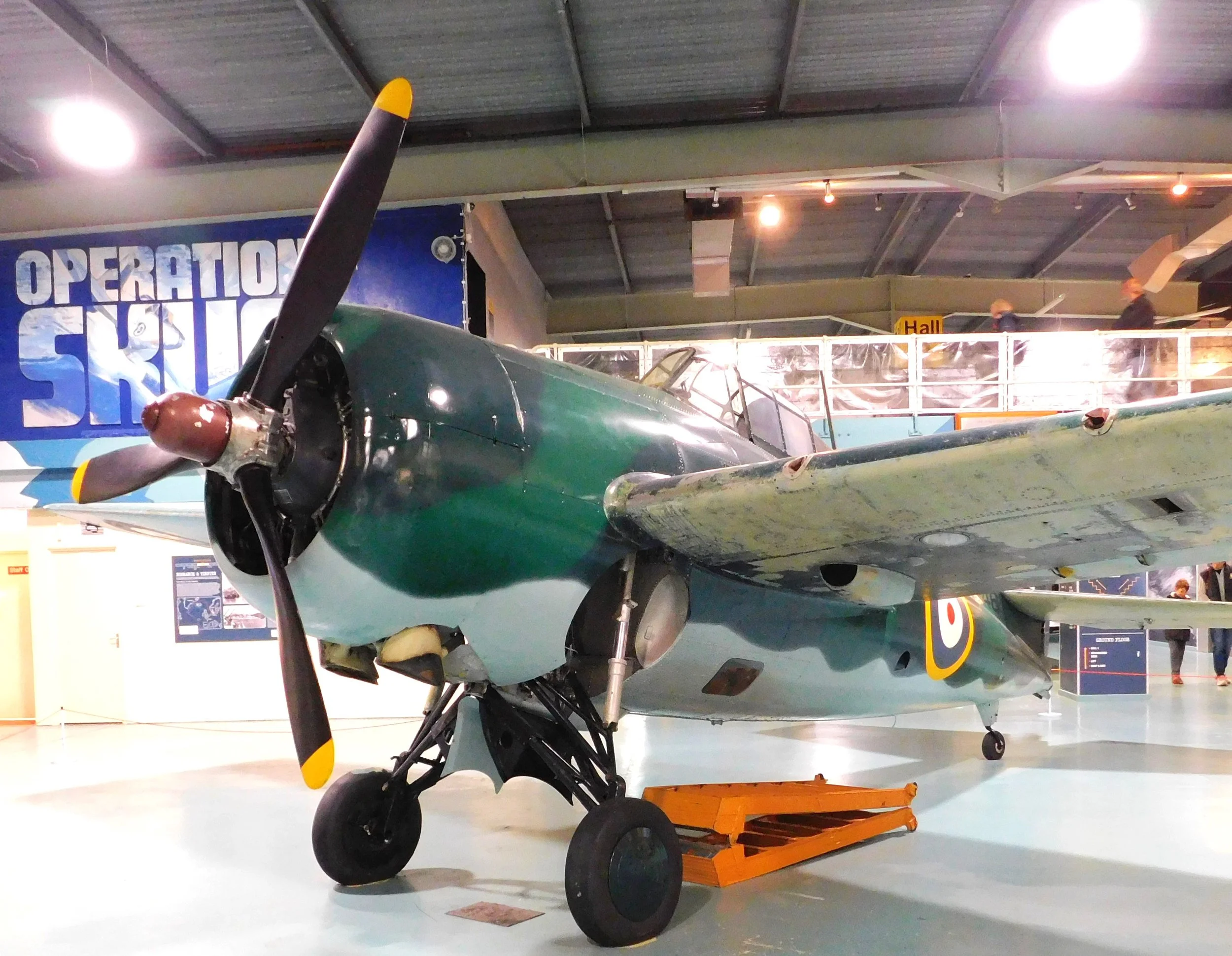 This Martlet I, AL-246, is the only surviving Martlet I. It served most of the war based in Scotland and later as a training aircraft. It has been part of the museum since 1964. There is little documentation about this interesting group of 81 aircraft and the museum has made it a continuing research project. There are details about that research on several of the accompanying placards, including facts about the colors of the paint. Some of the paint is original and some has been restored- which has been painstakingly researched. It is believed that the colors on display are how it was originally painted, but research continues.