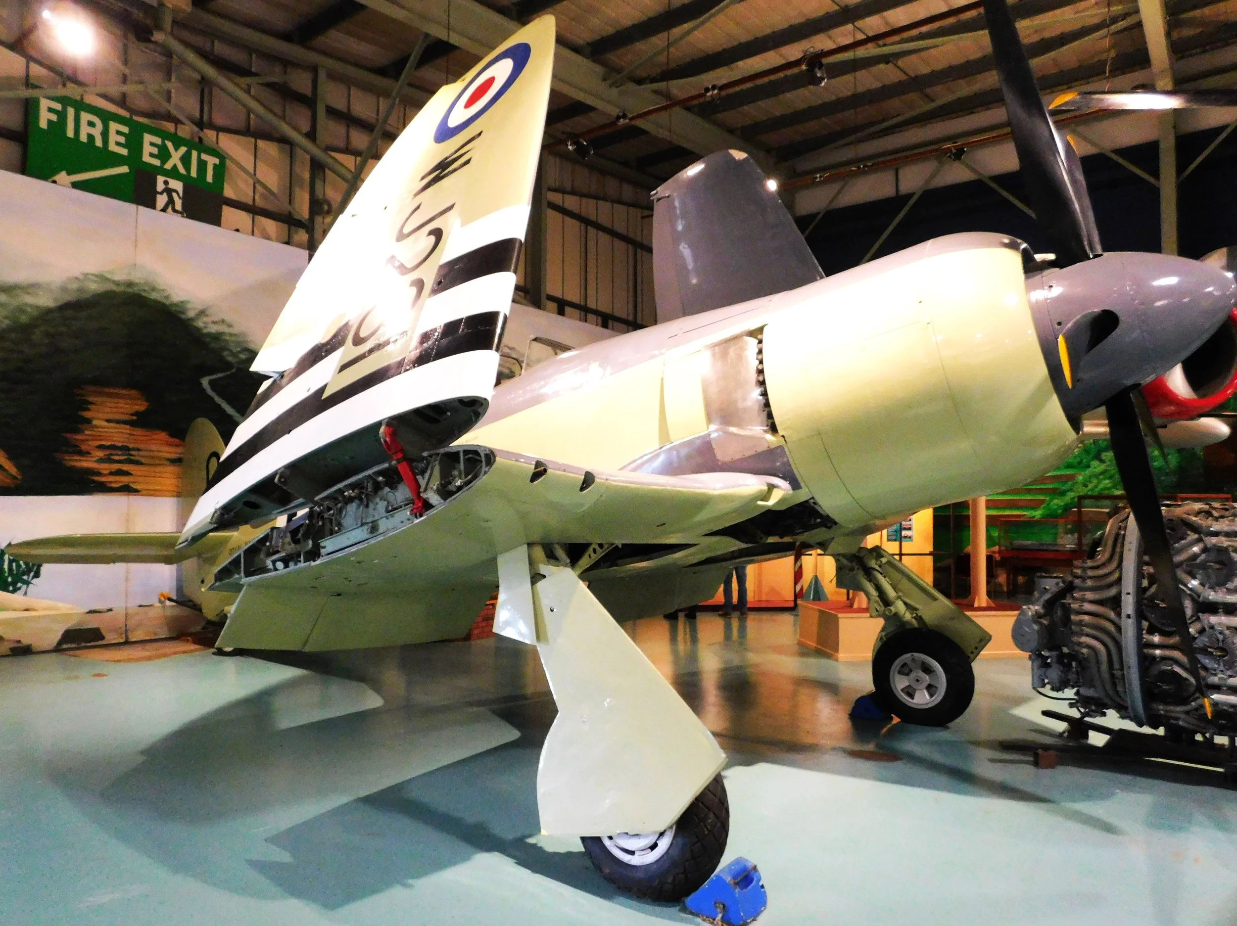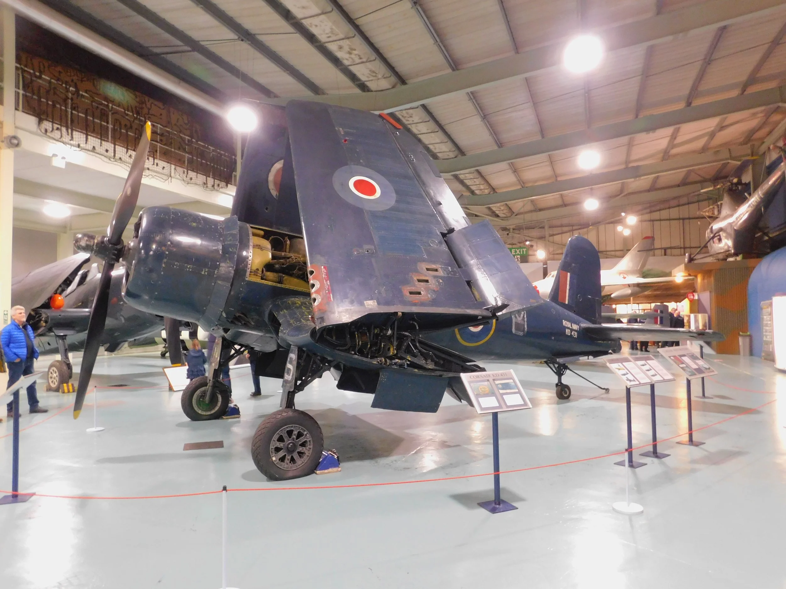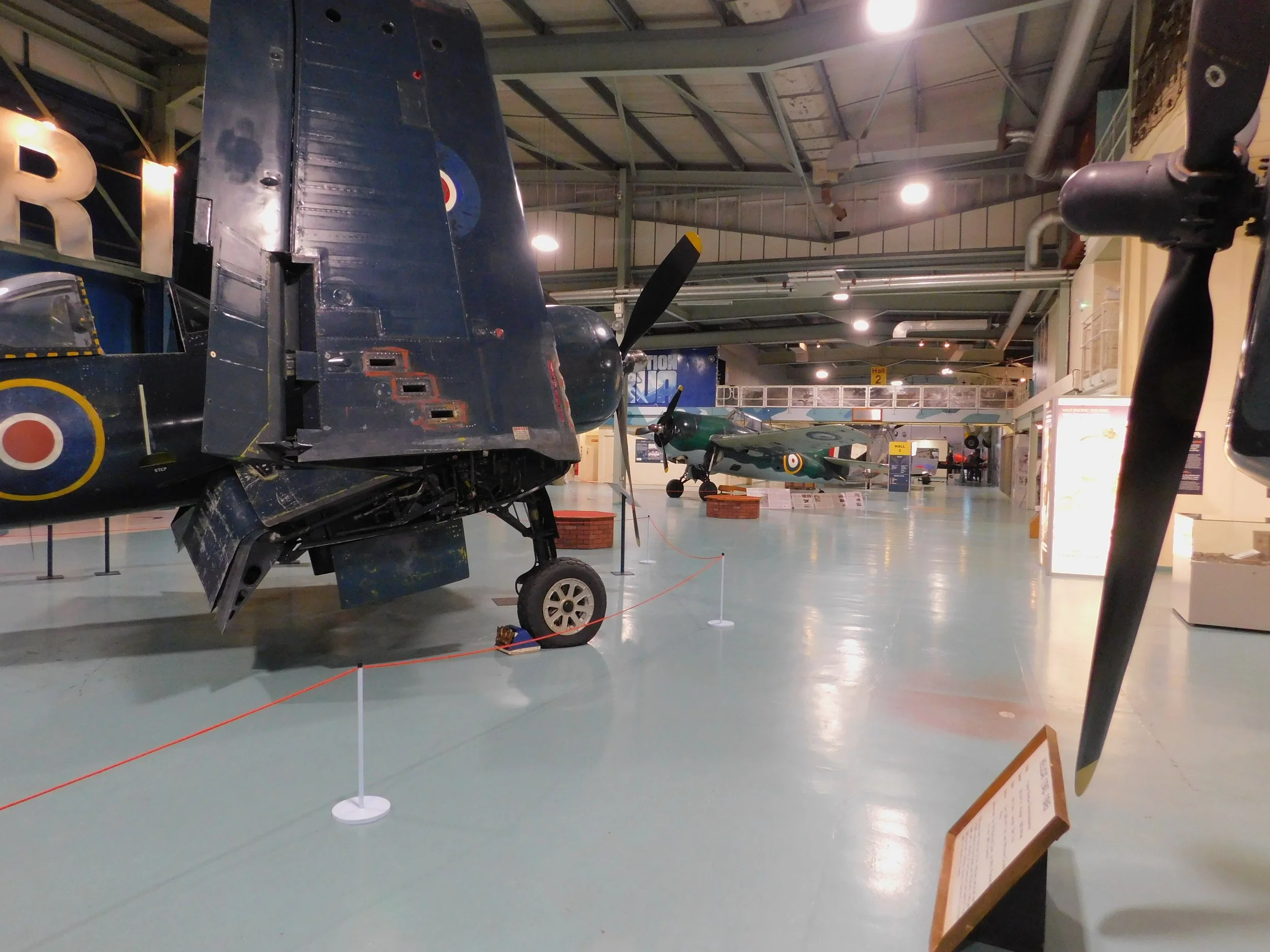Another example of an aircraft on display that tells visitors much more than just basic information is this RAF Corsair KD 431. This plane has been the subject of many years of forensic restoration resulting in what may be the most original Vought F4U Corsair in existence. Like the Martlet above, very careful attention was paid to the paint layers on the aircraft and what they can tell about the history of the plane. Some of the findings are described on the placards. There were six levels of paint found, representing the different squadrons it was attached to.