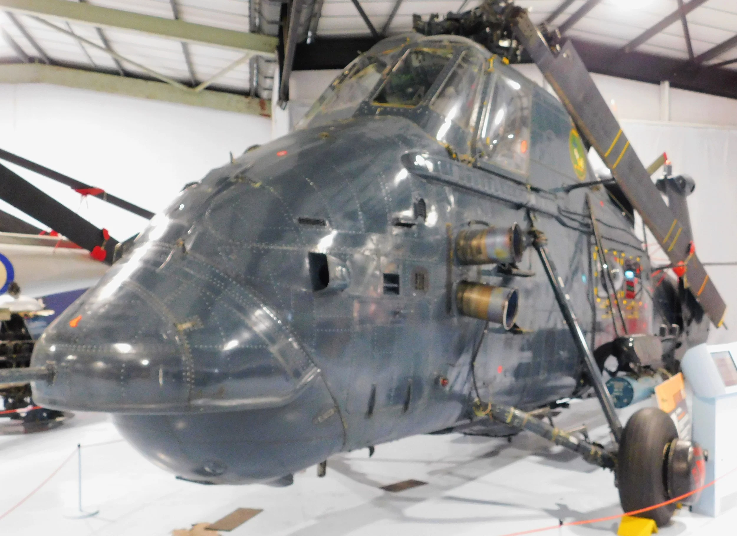 The Westland Wessex was a development of the Sikorsky H-34. The H-34 served for years in the U.S. Navy, powered by the Wright Cyclone R-1820 radial engine. In 1958, an H-34 was shipped to the Westland factory (in nearby Yeovil) where it was modified to be turboshaft powered. The first versions had one engine while later models, like Humphrey, were powered by two Rolls-Royce Gnome turboshafts. From 1958 to 1970, Westland built 382 of the various Wessex models.