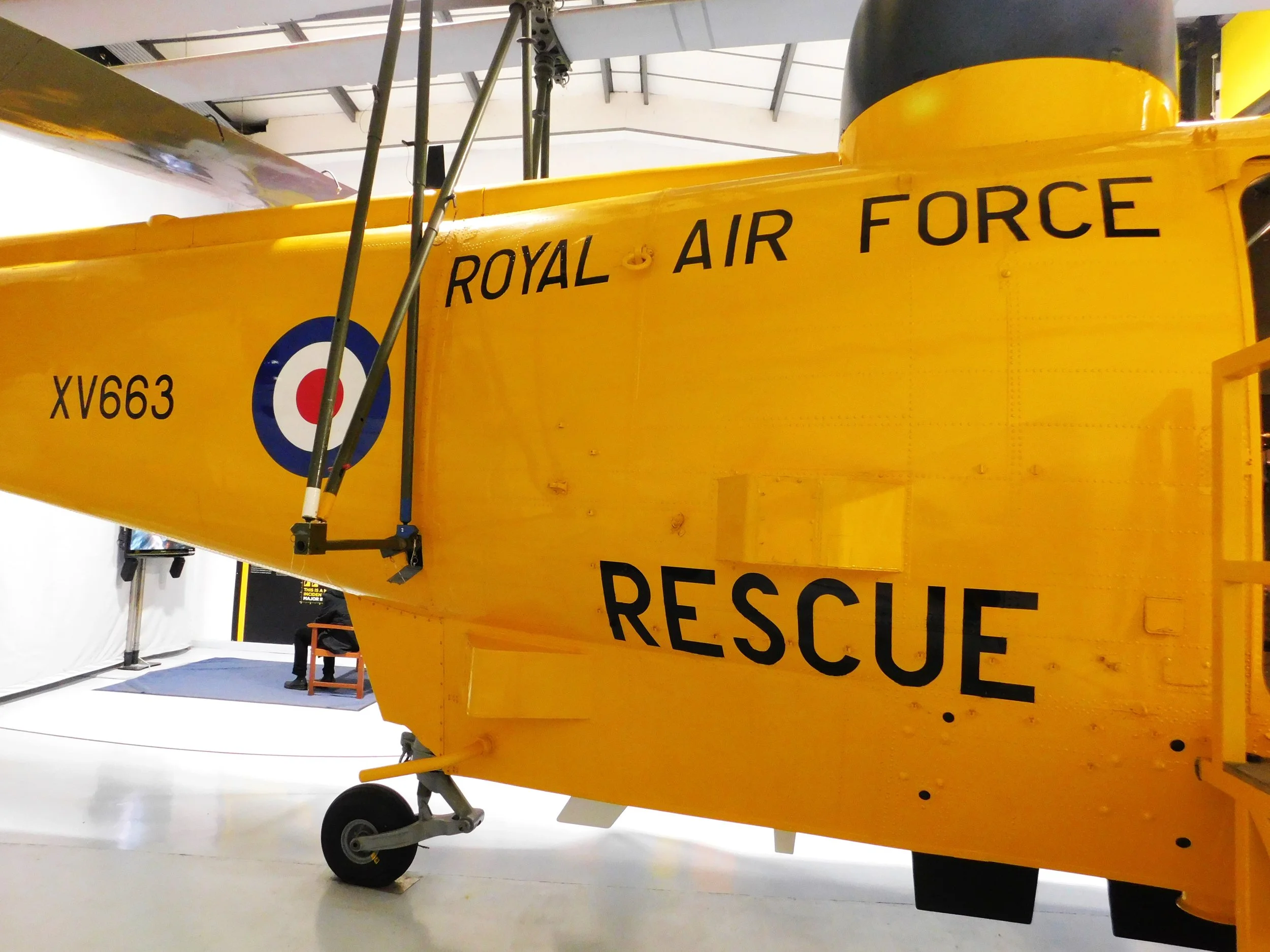 Although this Sea King served in the Royal Navy, the type also served in the RAF and one side is painted in Navy colors while the other is in RAF colors