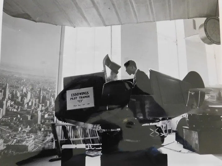 It was the original, very basic, flight simulator that was used extensively during WWII and beyond. It moved left and right with rudder input and the nose went up and down in response to stick inputs. There was a gun-sight on the dash and the wall in front of it had a huge photograph of Philadelphia from the air, with a small circle of light projected onto it. The spot of light moved all around and the idea was to keep this dot of light in your gun-sight. They kept score, and the top score each month won a free flying lesson. You had to be 16 to enter, so as soon as I hit the magic age, some friends and I went to give it a try. I thought I had done OK and sure enough, a few weeks later, I got a letter of congratulations saying I had won an hour flying lesson at Wings Field.